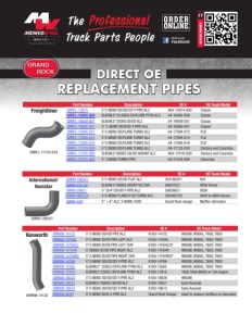 MIDWESTWHEEL.COM MEMBER KANSAS CITY 5801 E. Front St. Main ....(816) 471-1552 Parts....(800) 821-7402 JOPLIN 2424 Stephens Blvd. Main ....(417) 717-6022 Parts....(866) 318-9111 SPRINGFIELD 812 Lillian Dr. ∙ Strafford, MO Main ....(417) 429-2476 Parts....(800) 785-3705 SIOUX CITY 1819 4th St. Main ....(712) 252-7969 Parts....(800) 943-3534 CEDAR RAPIDS 200 50th Ave. S.W. Main ....(319) 365-4453 Parts....(800) 332-5435 DES MOINES 1436 E. Ovid Ave. Main ....(515) 265-1491 Parts....(800) 888-0248 CLEAR LAKE 840 Hwy. 18 W. Main ....(641) 357-7101 Parts....(800) 397-5630 DAVENPORT 8502 Northwest Blvd. Main ....(563) 322-2671 Parts....(800) 553-1886 OMAHA 9770 S 142nd Street, Suite 1 Main ....(531) 239-3050 Parts....(800) 322-8757 NEBRASKA IOWA MISSOURI November 14, 2025 (17Grand Rock OE Parts Flyer) Part Number Description OE # OE Truck Model Peterbilt GRRPB-13002 ELBOW,5"85DEG OD/FLARE PYRO ALZ 14-13002 3.57377E+11 GRRPB-13055Y 5"3-BEND ID/OD/OD Y-PIPE ALZ 14-13055 379 Conventional GRRPB-13056C ELBOW,5"56DEG OD/OD CHR 14-13056CP 379 Conventional GRRPB-13394 ELBOW,5"90DEG ID/OD,W/FLAT; ALZ 14-13394-202 379 1994 to 2007 GRRPB-13430 ELBOW5" 58DEG OD/FLARE PYRO ALZ 14-13430 377378379 GRRPB-13822 5"2-BEND OD/FLARE TURBO PYRO ALZ 14-13822 379 GRRPB-13845RC 5"2-BEND OD/OD PIPE RIGHT CHROME 14-13845RCP 377 GRRPB-15073 5"2-BEND ID/OD FLAT ALZ 14-15073 379 standard hood GRRPB-15329 ELBOW,5"62DEG OD/FLARE PYRO ALZ 14-15329 379 Conventional GRRPB-15353Y 5"3-BEND OD/OD/OD Y-PIPE ALZ 14-15353-150 379 Part Number Description OE # OE Truck Model Volvo GRRVG-0978 5"2-BEND OD/FLARE PYRO ALZ 8080978 VN and VNL GRRVG-1845 5"2-BEND OD/FLARE PYRO TURBO ALZ 8071845 N/A GRRVG-3286 5"2-BEND ID/OD PIPE ALZ 23509-3286 VN and VNL GRRVG-6419 5" 3-BEND 0D/OD/OD Y-PIPE ALZ 20457108 VN and VNL GRRVG-6745 5"2-BEND OD/FLARE PYRO TURBO ALZ 20446745 VN and VNL GRRVG-7104 5"2-BEND OD/OD PIPE ALZ 20457104 VN and VNL GRRVG-7107 5"3-BEND OD/OD/OD Y-PIPE ALZ 8078159 VN and VNL GRRVG-7109 5"2-BEND OD/OD PIPE ALZ 20457109 VN and VNL GRRVG-9180 ELBOW,90DEG ID/OD ALZ 20489180 VN and VNL GRRVG-9649 5"2-BEND OD/R4"FLARE PYRO ALZ 20779649 VN and VNL GRRVG-9180 GRRVG-6419 GRRVG-1845 GRRPB-15073 GRRPB-13394 GRRPB-15329 GRRPB-13002