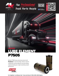 CATALOG NUMBER 20 Baldwin P7505 heavy-duty lube element with PleatArmor™ wrap technology, delivers superior contaminant removal efficiency and dirt-holding capacity keeping your engine operating at peak performance. For Freightliner® and Western Star® Trucks with Detroit® DD13, DD15, DD16 Engines LUBE ELEMENT P7505
